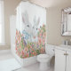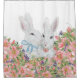 Whimsical White Bunny Rabbits, Pink Flowers Pastel