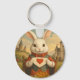 Whimsical White Rabbit Hearts Enchanted Wonderland Keychain