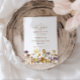 Celebrate your love with this elegant and minimalist wedding invitation, featuring hand-painted watercolor wildflowers in rich fall hues of purple, burnt orange, yellow, and green. Set against classic white background, the terracotta modern script adds a contemporary touch. Perfect for boho garden weddings, rustic chic ceremonies, or fall celebrations, this design captures the essence of nature's beauty.