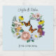 A whimsical botanical illustration featuring blooming wildflowers, soft pastel garden roses, delicate daisies, golden coneflowers, woodland mushrooms, lush greenery, and fluttering monarch butterflies. This enchanting nature-inspired artwork creates a romantic, fairytale atmosphere perfect for a wedding. Ideal for couples who love boho florals, woodland themes, cottagecore aesthetics, or charming outdoor celebrations.