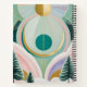 This enchanting artwork transports you to a serene winter wonderland, bathed in a delightful palette of pastel blue, soft pink, gentle purple, and serene green, all accented with shimmering gold. Three charming trees stand gracefully amidst a delicate snowfall, their branches lightly dusted with the dreamlike hues. Above, a stylized sun, adorned with intricate patterns, casts a warm, whimsical glow across the sky, completing this magical and imaginative snow landscape. It's a piece that evokes feelings of peace, wonder, and nostalgic childhood dreams.
