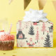 This image features a charming pattern of houses and trees set against a soft cream background. The illustration depicts a cozy Christmas village scene, complete with Christmas trees, a fireplace, Santa and a festive atmosphere. The colour palette includes shades of cream, green, and beige, red, with accents of dark grey. The intricate details and whimsical aesthetic evoke a sense of warmth and nostalgia, making it a delightful addition to any holiday decor. This image captures the essence of a festive winter wonderland, filled with joy and cheer.