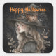Whimsical Witch on Black Damask Square Sticker