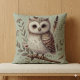 Whimsical Woodland Owl Botanical Illustration Throw Pillow