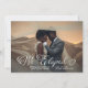 This elegant and trendy wedding elopement announcement features lovely white calligraphy over your personal wedding photo, and a soft peachy watercolor wash on the back.