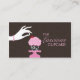 © 2011 Socialite Designs. Whimsical cupcake, with swirl icing and a hand adding a cherry to the top, business cards ready for you to personalize. Font style and colour can be changed by pressing "Customize It" button. Do you require HELP with customizing? Please do not hesitate to contact me with your requirements.