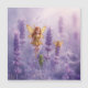 Among blooming lavender fields, three magical beings gather — a golden-winged fairy, a playful sprite, and a leafy companion.