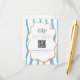 Wedding QR code enclosure card with a hand drawn, blue and orange, whimsical striped frame design - perfect for a spring or summer destination wedding.