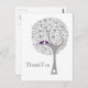 a grey whimsy love tree with two purple love birds on tree branch, mod and trendy wedding Thank you cards. Matching products also available.