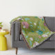 Cute, fun, cheery, whimsical little birds of teal, white, wine, and pink on pretty aqua blue vines with little white flowers on a green background, a design you're sure to love on a woven throw that's comfy and beautiful!