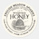 Central design features an illustration of a vintage skep. Personalize with your apiary name, address and product description (raw, organic, etc.) and net weight.