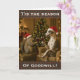 If you own or love a Whippet or are a dog lover I'm sure you'll know the penchant that Whippets have for squirrels! Our Whippet goes from zero to 100 if he sees or gets wind of one. Here they are toasting their Christmas truce in this Christmas holiday greetings card. The Whippet dog and the squirrel are both sitting in armchairs opposite one another with a glass of red wine which they're making a toast to one another with. A Christmas tree is behind them with twinkling light.