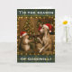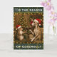 Brindle Whippet dog and squirrel Christmas Holiday greetings card.