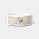 This is a heavy, durable bowl decorated with Tibbies of many colors, the perfect size for hungry/thirsty Tibs. The design is interesting and printing clear.