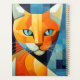 Obtenez cette illustration captivante de style cubiste d'un chaton orange magnifique peint en lignes carrées et audacieuses sur un fond apaisant de teintes bleu-gris. Ce rendu allie innovation artistique et élégance féline. Ce qui distingue cette oeuvre d'art sont les yeux bleus fascinants du chat, capturant l'essence de son regard d'une manière vraiment unique. L'inclusion méticuleuse de whiskies blancs ajoute une touche délicate, mettant en évidence les détails complexes au milieu de la beauté abstraite. Le contraste entre les tons oranges chauds du chat et les bleus et gris cool de l'arrière - plan crée une composition visuellement saisissante.