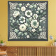 Soft florals intertwine with graceful Celtic knot motifs in a balanced folk composition filled with clover shapes, curling vines, and layered blossoms. Muted sage greens, warm ivory, and deep charcoal create a calm, heritage-inspired palette that feels both old-world and gently modern. The flowing symmetry and botanical details evoke cottagecore charm, Celtic folklore, and a quiet, storybook mood rooted in tradition and nature. AI generated artwork.