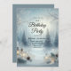 Set the tone for your winter celebration with this elegantly frosted invitation featuring a dreamy forest scene aglow with soft lantern light and freshly fallen snow. Muted blues, silvers, and whites create a serene and magical backdrop, perfect for cozy gatherings and sophisticated seasonal events. The tranquil landscape evokes warmth, wonder, and a touch of holiday charm, making it ideal for winter birthdays, showers, engagements, and more.