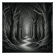 a dark and spooky woodland, shrouded in an eerie mist.