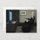 Campy image of Whistler's Mother in rocking chair watching her big screen T.V. while holding remote control. (Photo Credit: James Steidl)