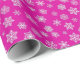White 3-d snowflakes on a fuchsia pink background wrapping paper