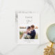 A custom photo on the front side, thank you text and a white 3D roses design on the backside.