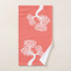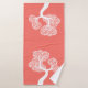 White abstract circle tree and name living coral bath towel set