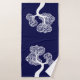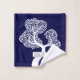 White abstract circle tree and name on navy blue bath towels set. This lovely, design displays a white abstract tree with circles instead of leaves on all three pieces on blue background and a frame with name on the wash cloth. You can remove the name if desired.