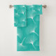 White abstract leaves pattern on mint-green bath towel set