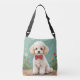 White adorable poodle with bow tie crossbody bag