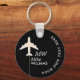 White airplane on (custom colour) black-keychain, personalized with name and text... special for pilots and airport professionals