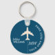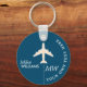 White airplane on (custom colour) blue-keychain, personalized with name and text... special for pilots and airport professionals