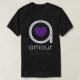 Love is one of the most beautiful words in the language. The same goes for the word "Amour" which means "Love" in French and is known internationally in most countries. It is the reason why we made this beautiful design for your men's black t-shirt. This artwork consists of a large white round "a" enhanced with a thin purple line, with a purple heart in the centre. Underneath, you will find the word "amour" printed in a trendy rounded white font. The "a" and the "o" have a purple heart in the centre. Finally, you will find a customizable name written in a very original red dotted font. Please, replace the default name with yours, or feel free to delete it.