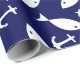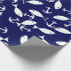 White Anchor Blue Background Captain Sea Fish Wrapping Paper