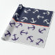 White Anchor Blue Background Captain Sea Ocean Wrapping Paper