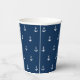 Paper cups featuring a white anchor pattern with an editable background colour (click customize, go to the "Auto Warping, Wrap" layer and change the background colour). They make great paper cups for a beach or nautical theme celebration.