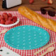 Paper plates featuring a white anchor pattern with an editable background colour (click customize and change the background colour). They make great paper plates for a beach or nautical theme celebration.