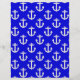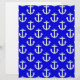 White nautical anchors on blue background. Nautical decor pattern.