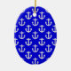 White Anchors On Blue Background Ceramic Ornament