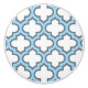 White and Baby Blue Trellis, Lattice, Quatrefoil Ceramic Knob