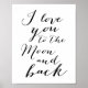 Typography black I love you to the Moon and back poster printed on matte white background. Dimensions of the sign print (poster) are 8 inches by 10 inches.