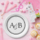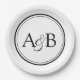 White and Black Monogram and Ampersand Couple's Paper Plate