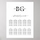 A minimalist black and white monogram initials wedding design. A simple design that uses the bride's and groom's initials and names to create an elegant classic monogram. A charming black and white minimalist monogrammed design with classy script typography. An elegant black and white monogram initials themed wedding seating chart design with modern elements. Matching wedding invitations and other stationery items are also available.