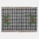 rustic white and black plaid with pine-cone detail