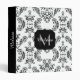 White and Black vintage damask pattern Monogram Binder