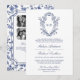 White and Blue Chinoiserie Crest QR Code Wedding Invitation