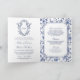 White and Blue Chinoiserie Crest QR Code Wedding Invitation