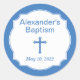Personalized round Baptism / Christening stickers are a great way to customize your favour, seal your invitations or thank you cards or use for gift labels. This sweet design features a blue cross and your text inside a beautiful blue frame.