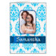 Easily personalize this modern elegant sophisticated white and blue damask pattern design by adding your own photo of your loved one and name or text to the templates to make a unique customized product. Visit the PHOTOGIFTZ STORE for matching products. The template photo image text and can easily be replaced with your own, Photographs of the same 4 x 3 dimension should replace the template image exactly. If your photo is of a different dimension you may have to use CUSTOMIZE to adjust the size, of the photo and text, by drag and drop.