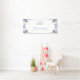 White and Blue Floral Quinceanera party banner. Designed with delicate blue and white flowers accented with a sparkling diamond and light blue gem crown. This beautiful banner is a perfect addition to your quinceanera decor.