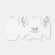 Wedding favour box, whimsical, minimalistic, modern, customizable black script typography. Botanical branches accent with a white background.